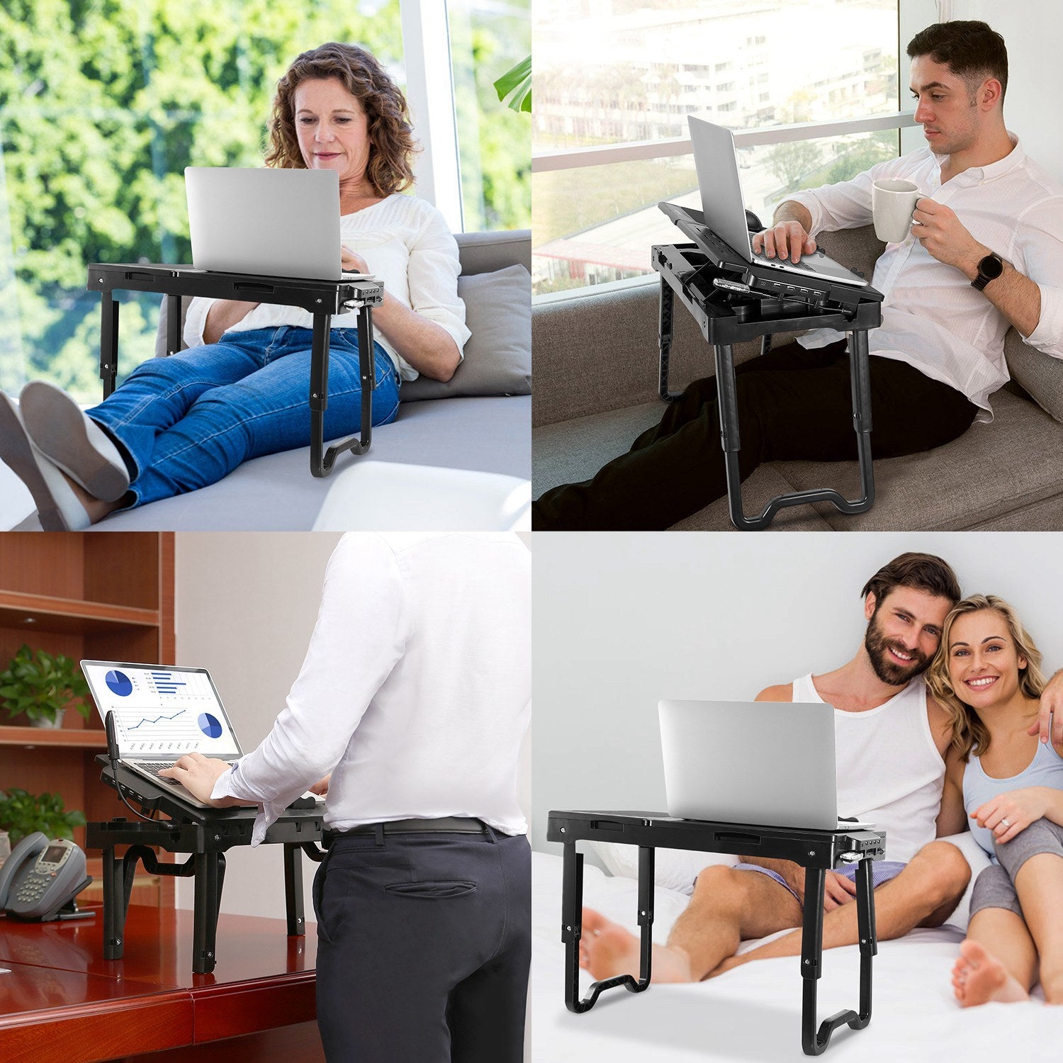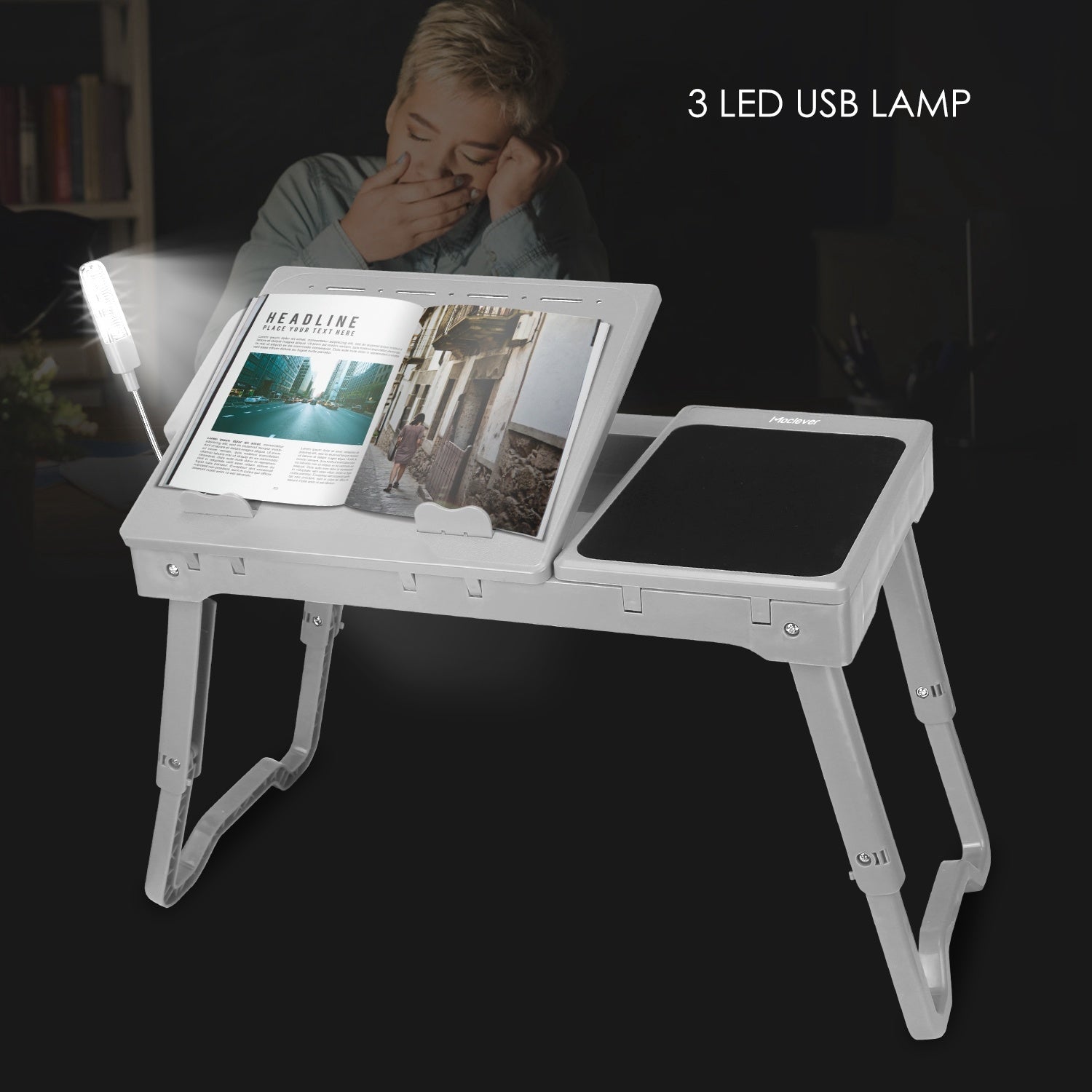 Foldable Laptop Table Bed Notebook Desk with Cooling Fan Mouse Board LED light 4 xUSB Ports Breakfast Snacking Tray