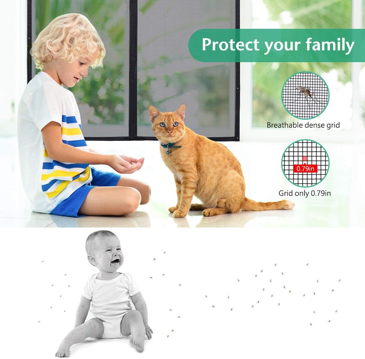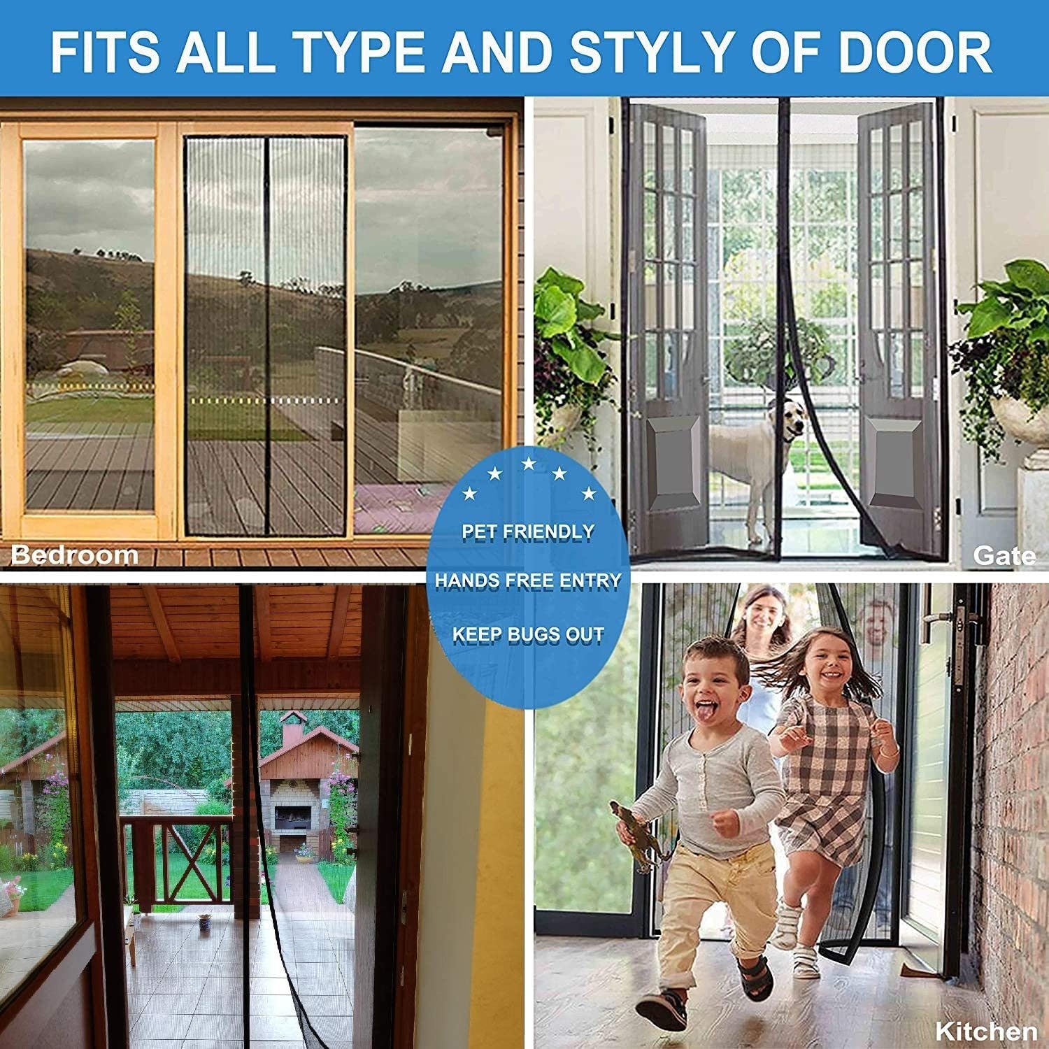 Our heavy duty mesh screen door allows you to keep your doors open to let in sunlight and fresh air, while keeping pests out. Perfect for adults, kids, and pets, the magnetic seam opens easily with just a nudge, and closes automatically behind you.
