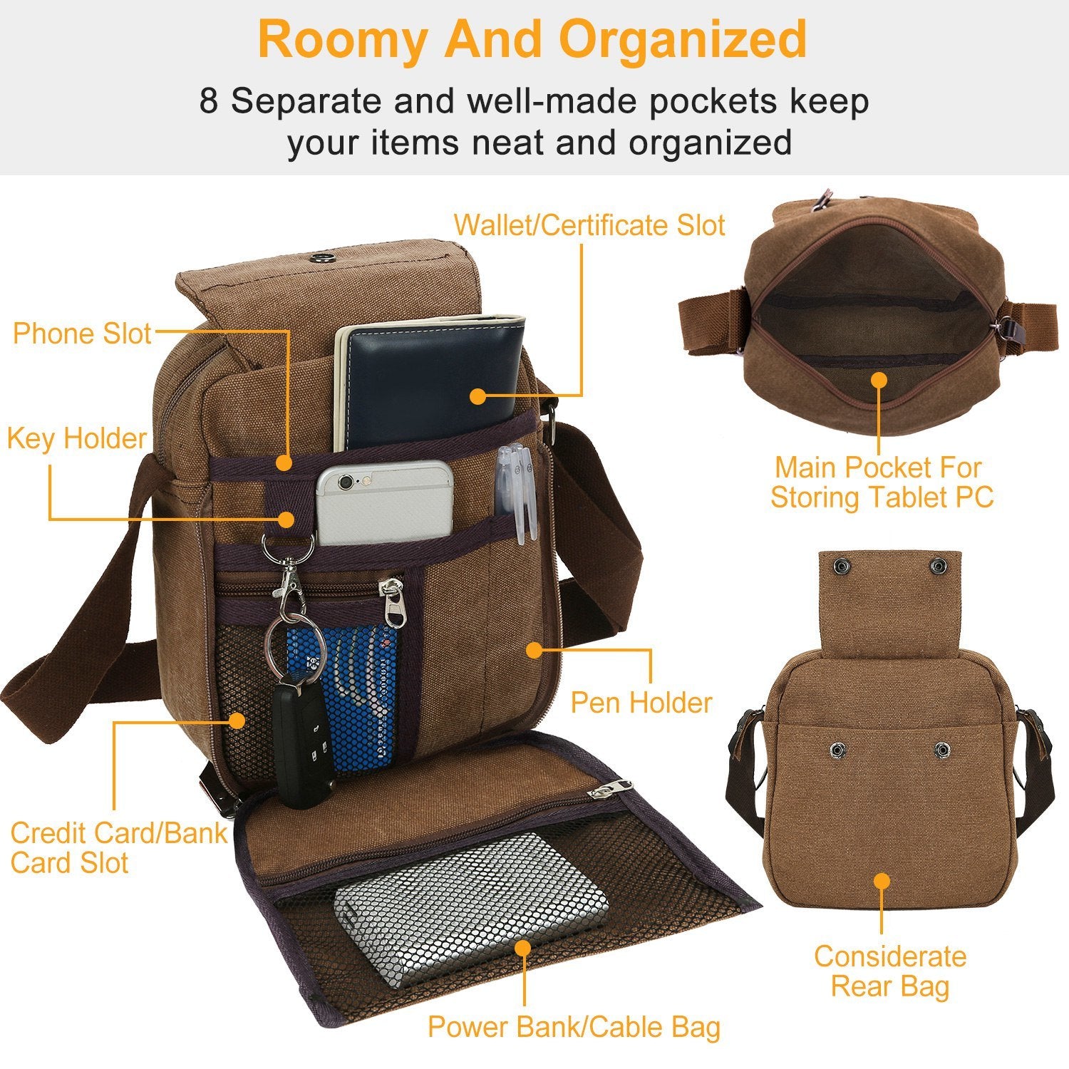 Unisex Crossbody Bags Canvas Phone Tablet PC Shoulder Bag Credit Card Key Messenger Purse