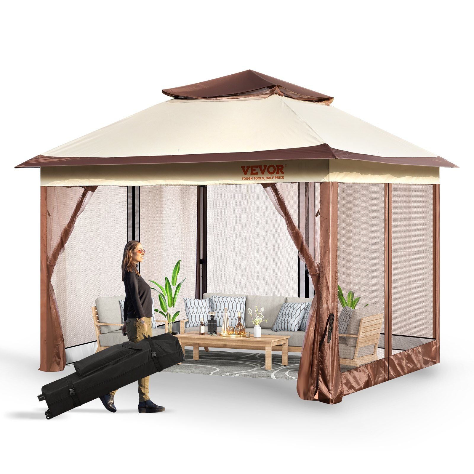 VEVOR Patio Gazebo, 11 x 11 FT Pop up Gazebo for 8-10 Person, with Mosquito Netting, Metal Frame, and PU Coated 250D Oxford Cloth, Outdoor Canopy Shelter for Patio, Backyard, Lawn, Garden, Deck