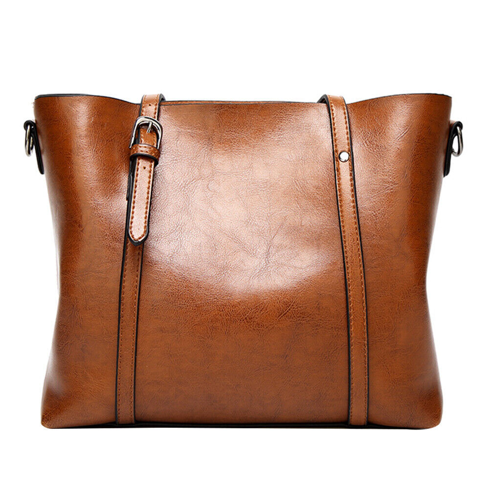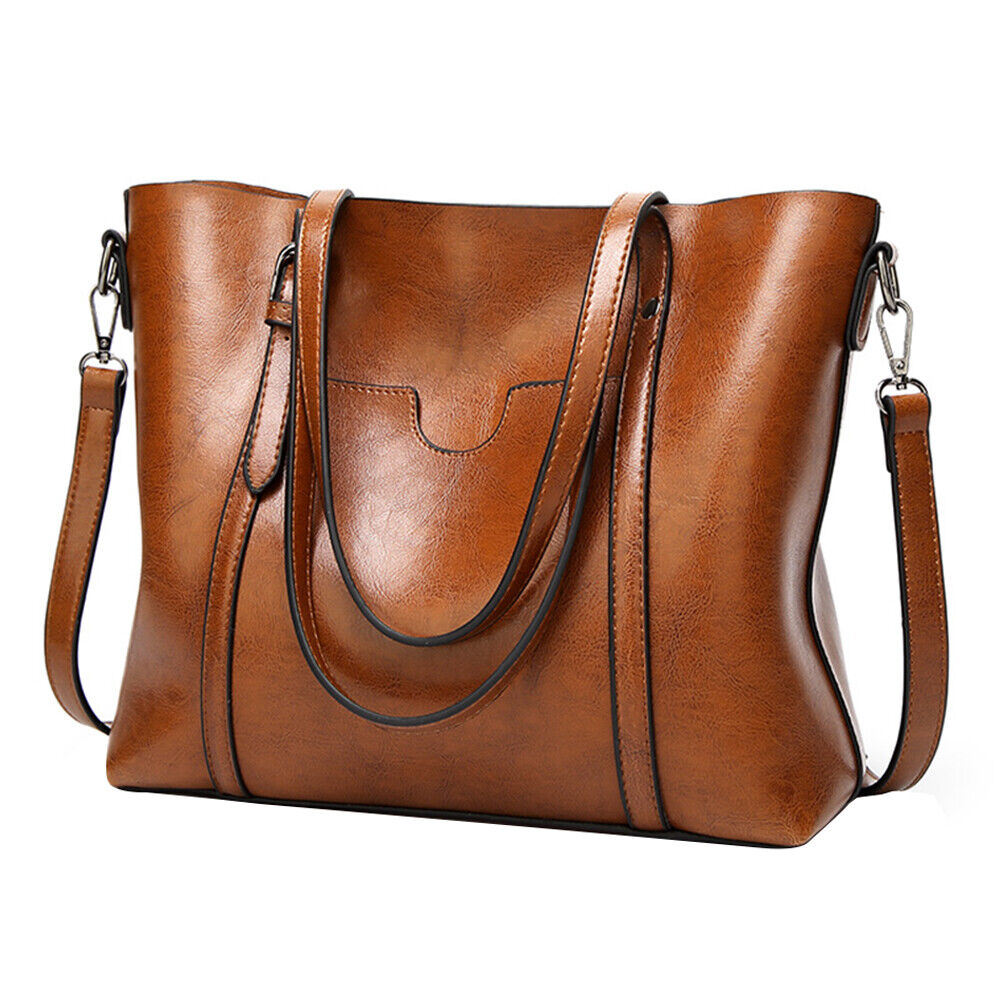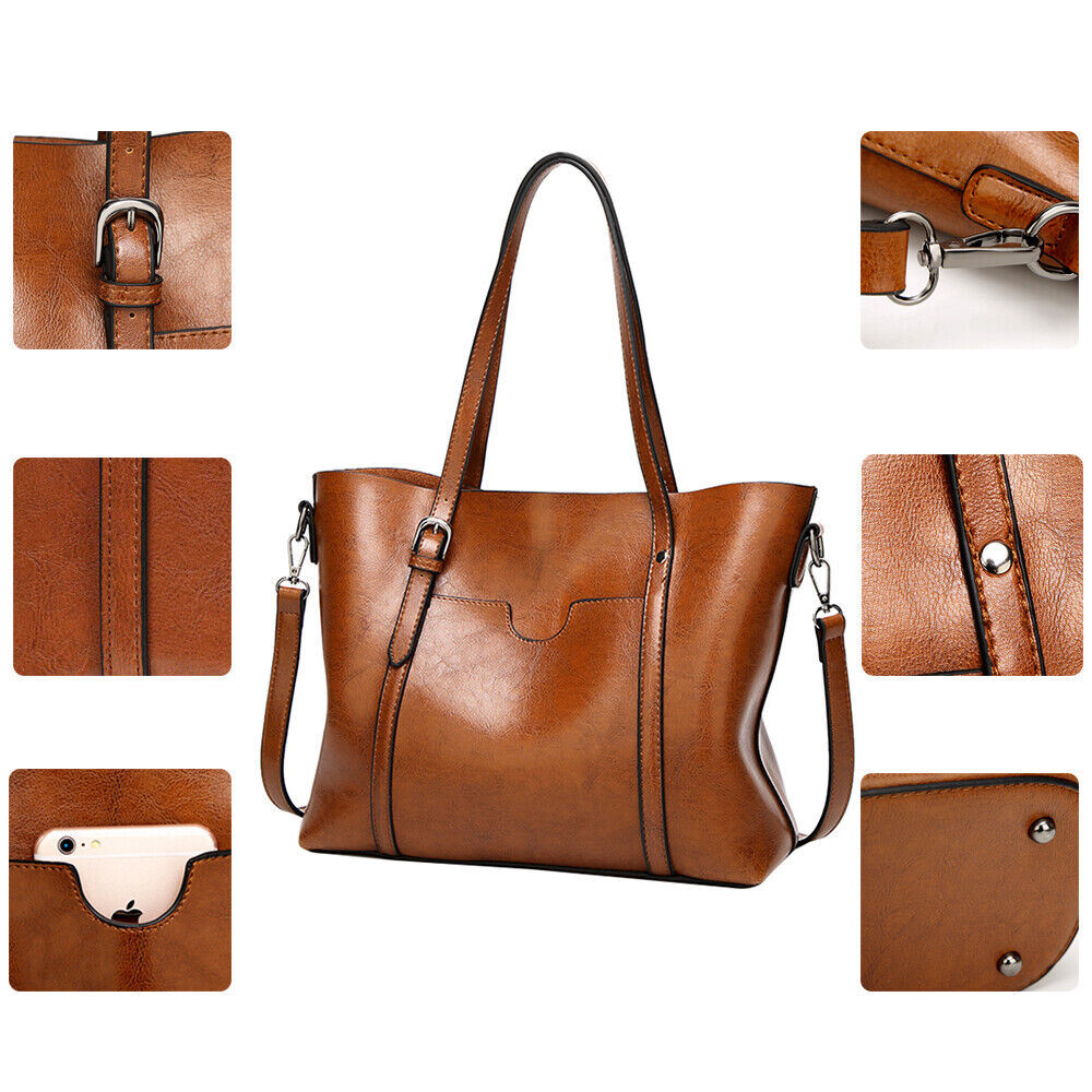 Women Oiled PU Leather Handbag Ladies Messenger Briefcase Tote Purse Shoulder Bag