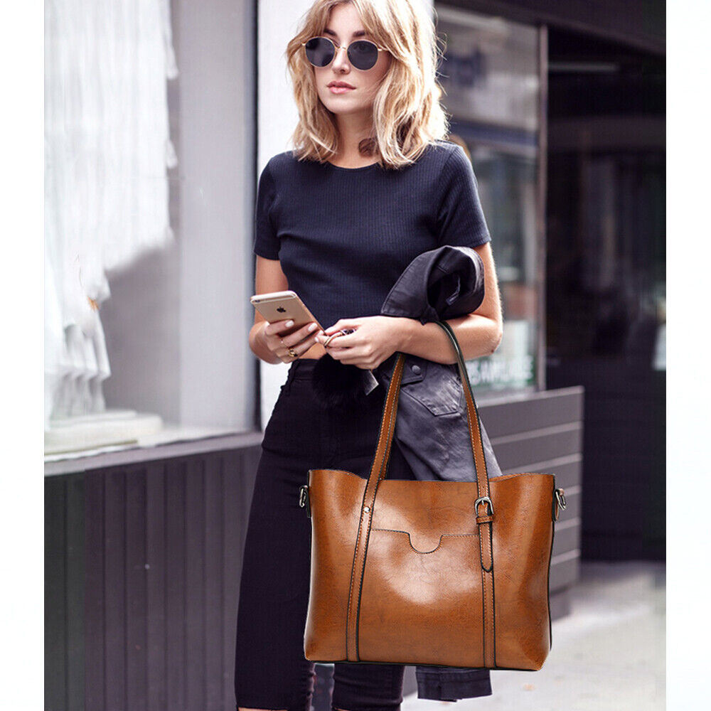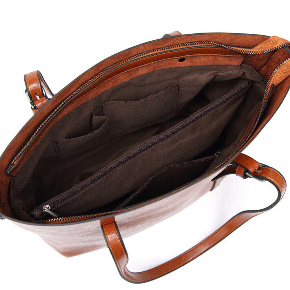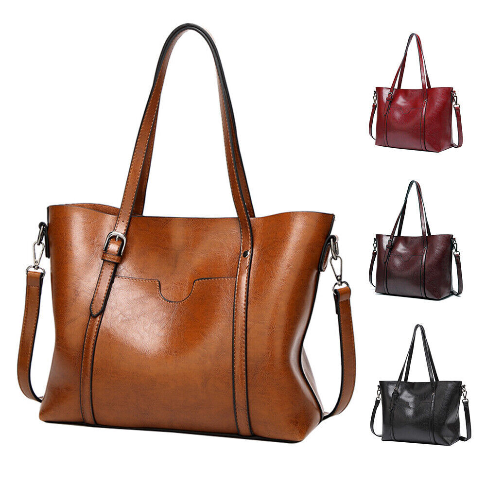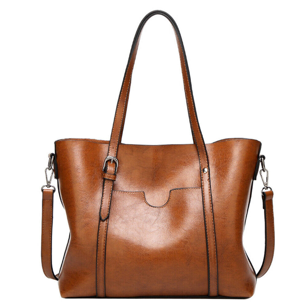Women Oiled PU Leather Handbag Ladies Messenger Briefcase Tote Purse Shoulder Bag